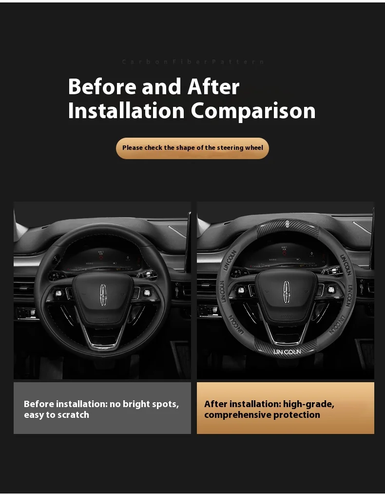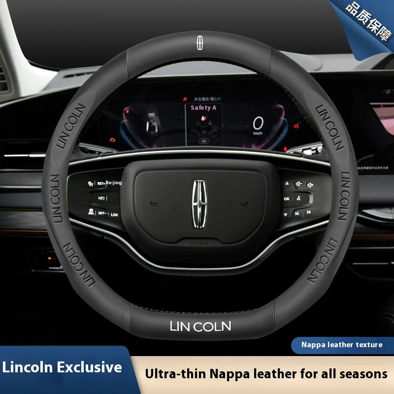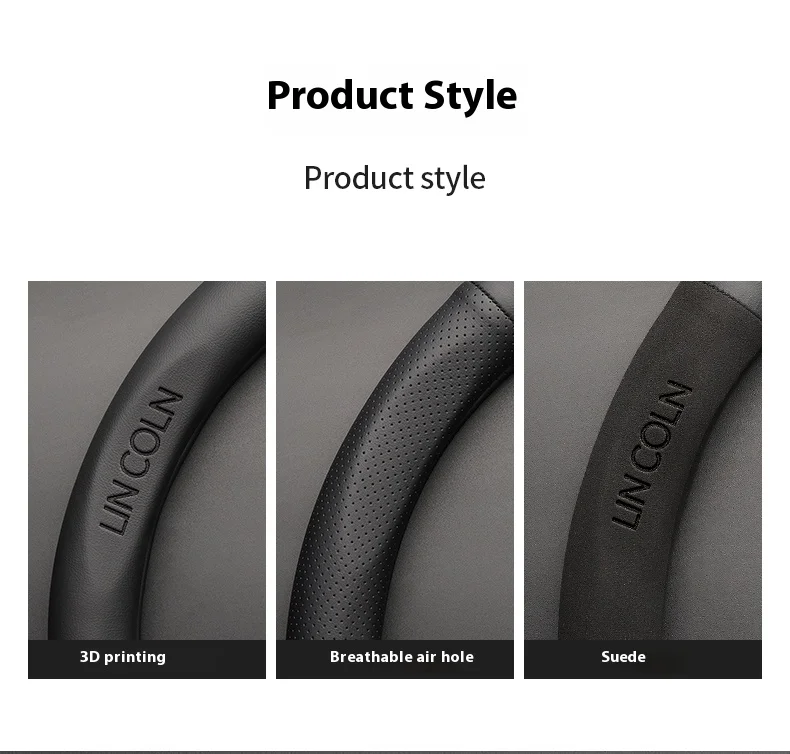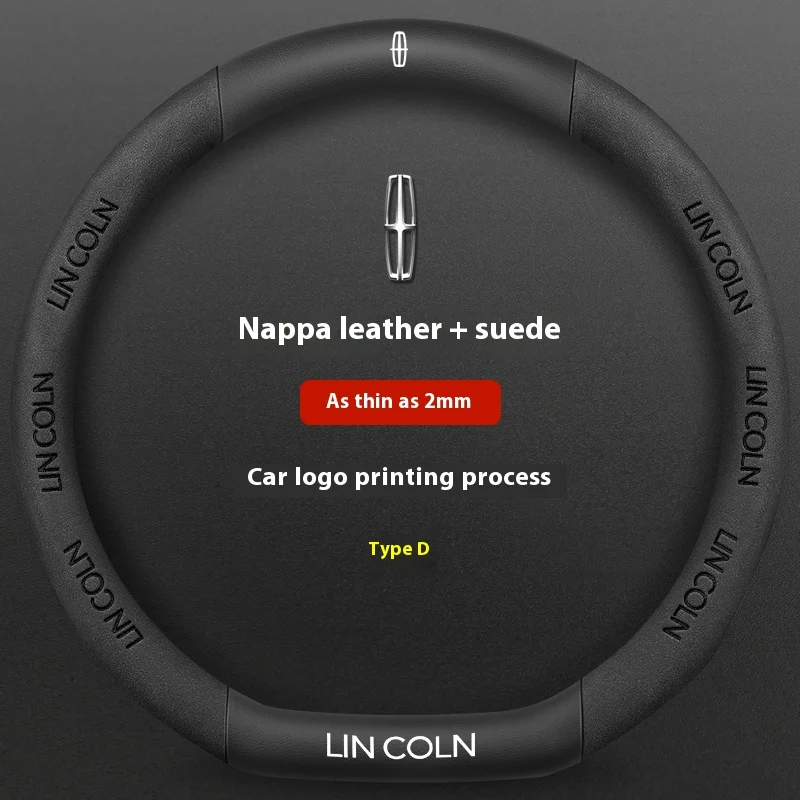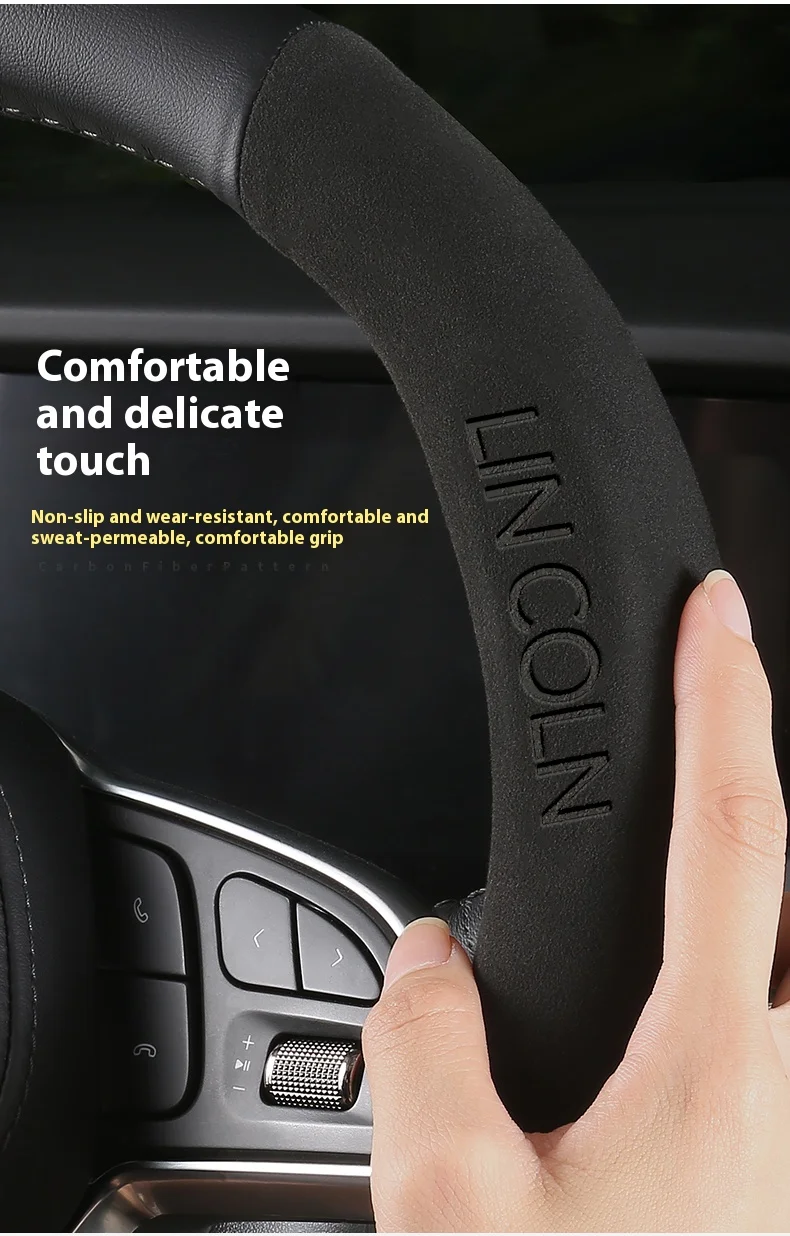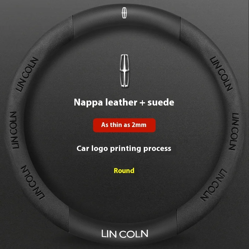 Premium leather and suede steering wheel cover designed specifically for Lincoln vehicles. Features anti-slip grip technology for enhanced driving safety and comfort. Perfect fit for MKZ, MKC, MKX, Navigator, Aviator, and other Lincoln models.