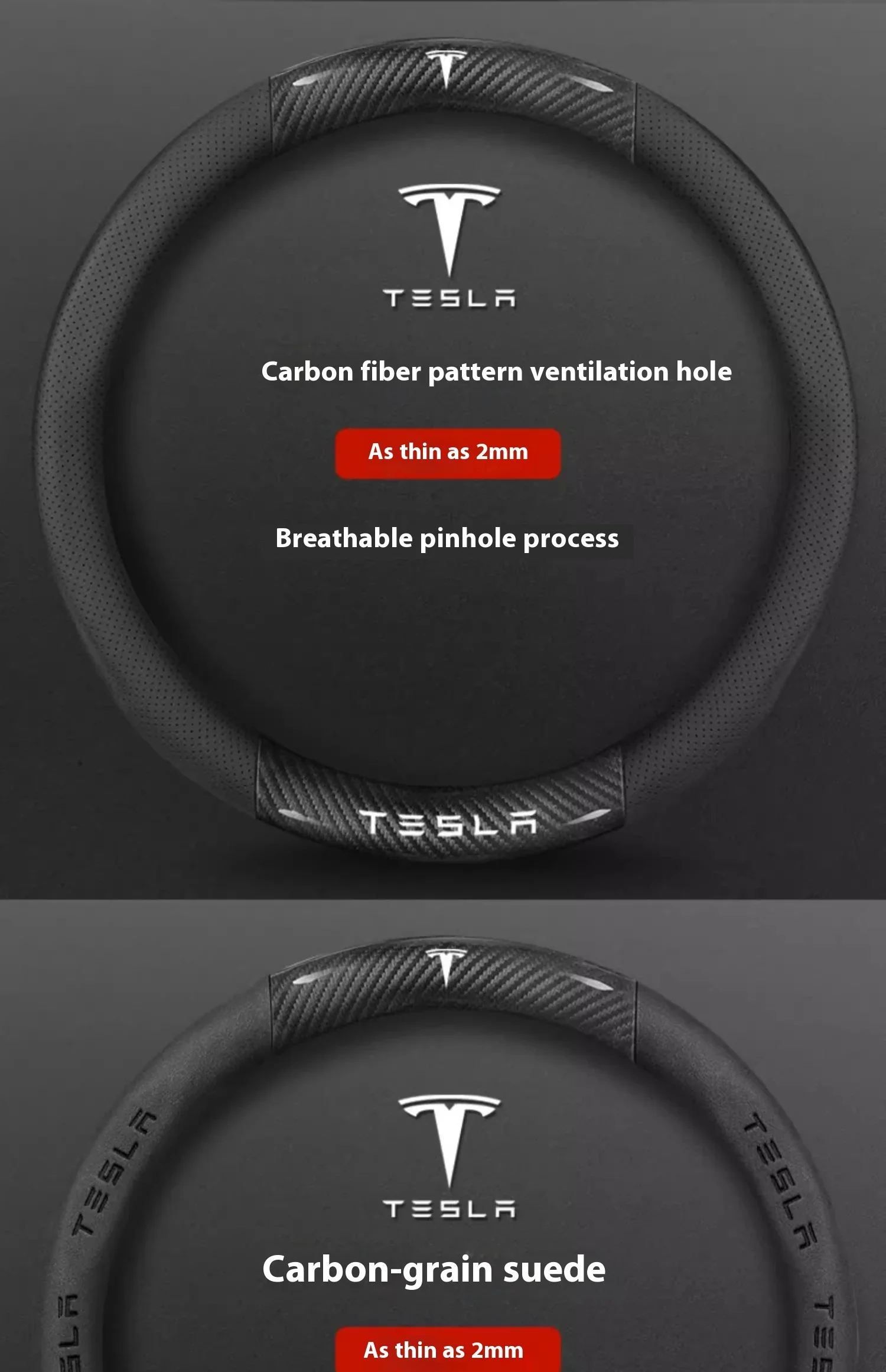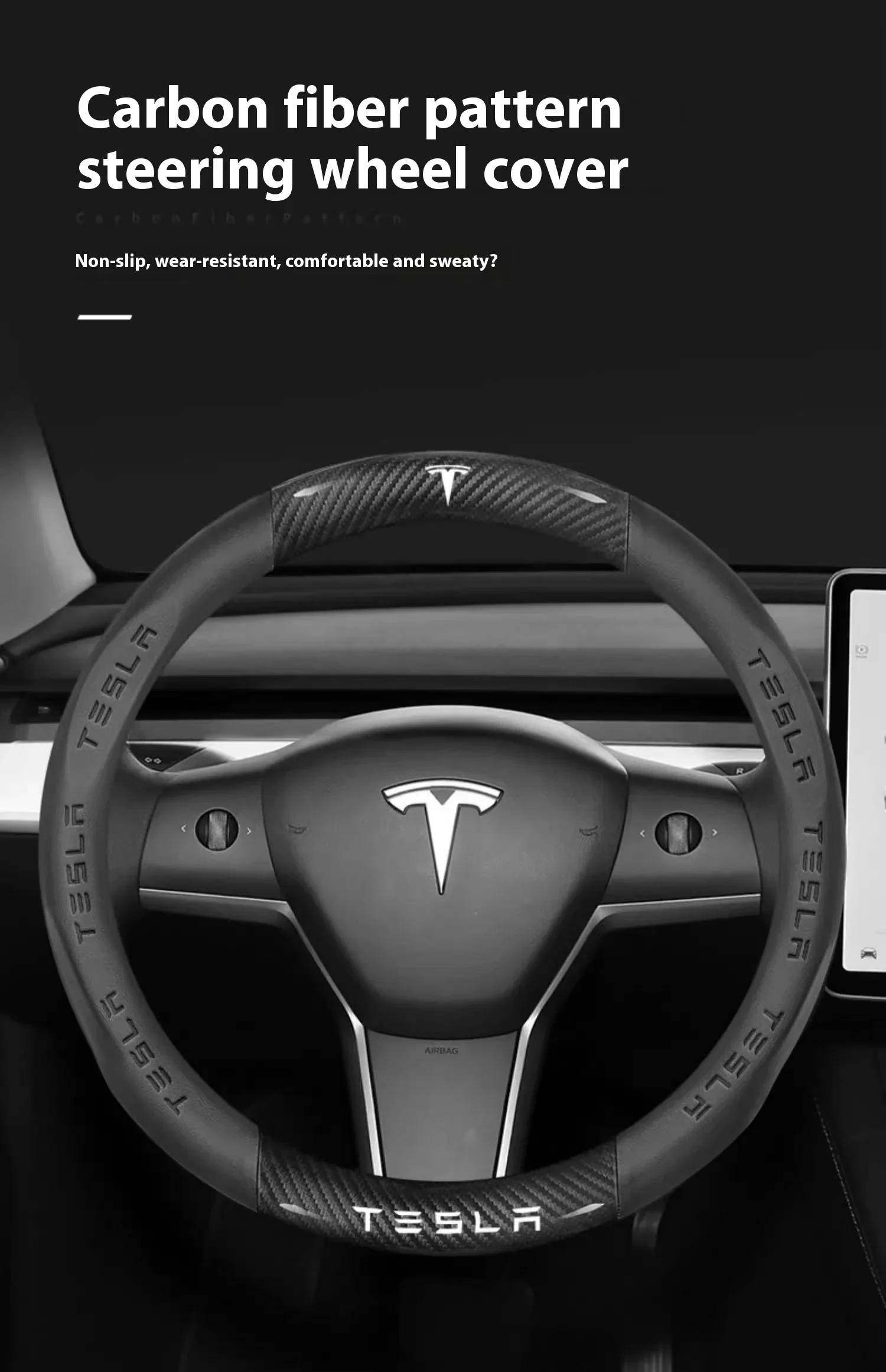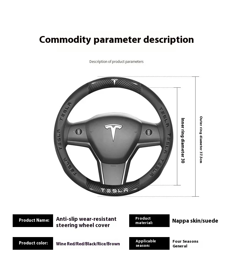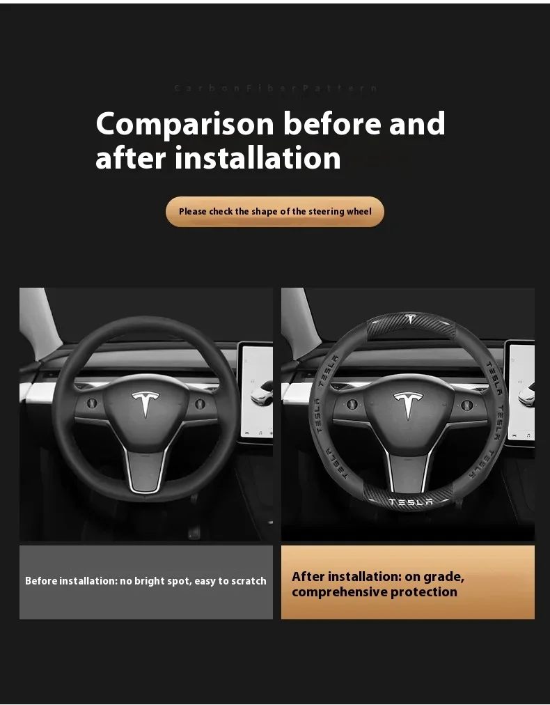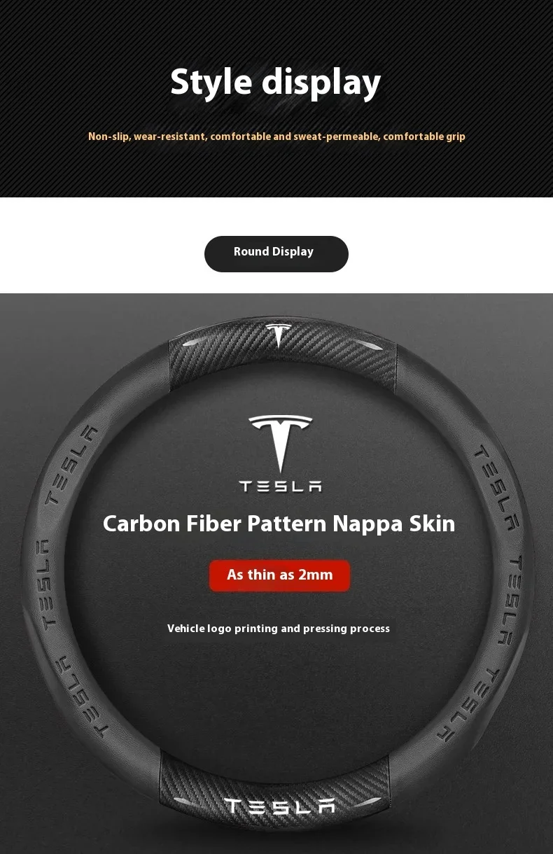 Tesla Carbon Fiber Leather Steering Wheel Cover