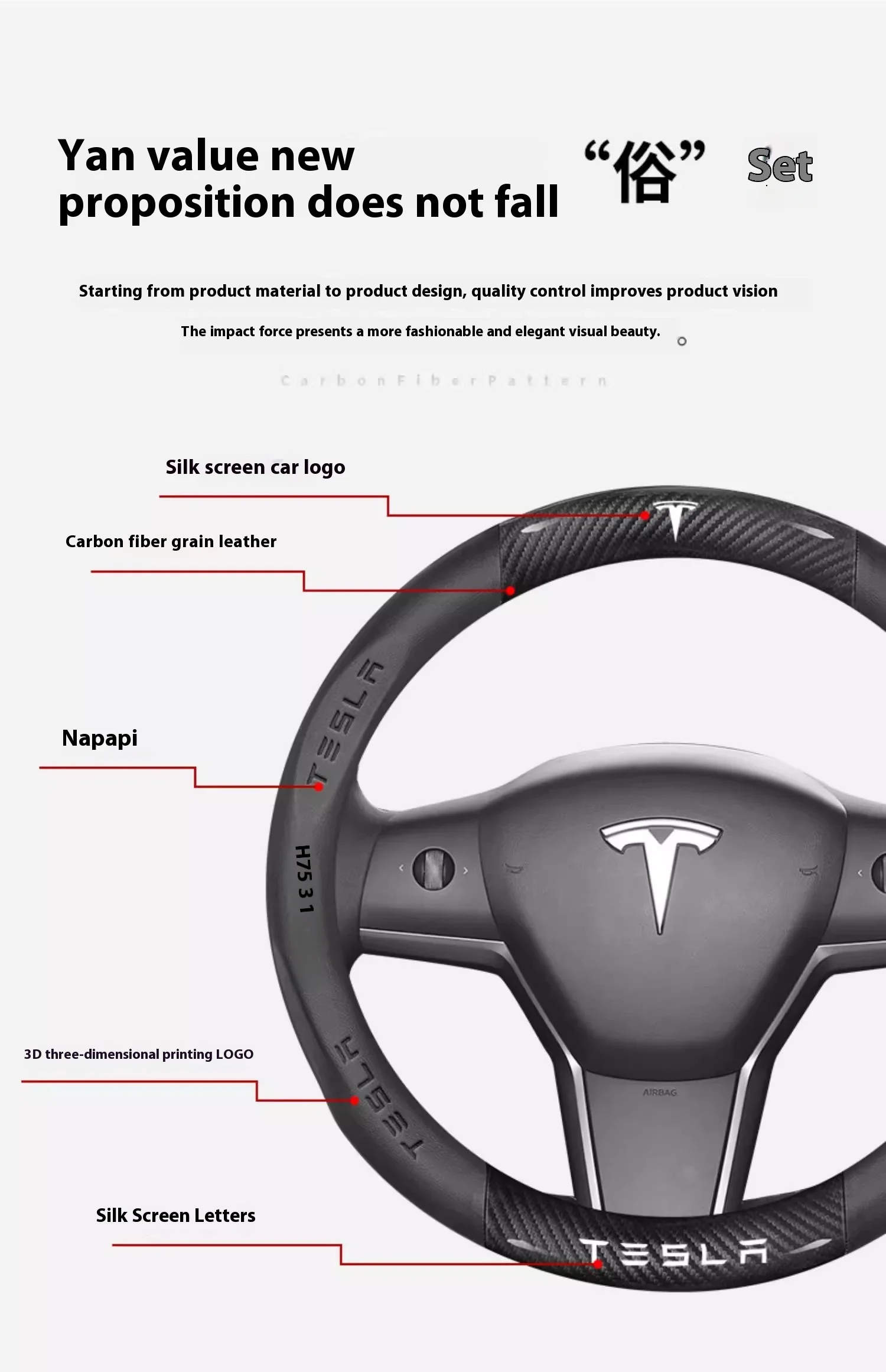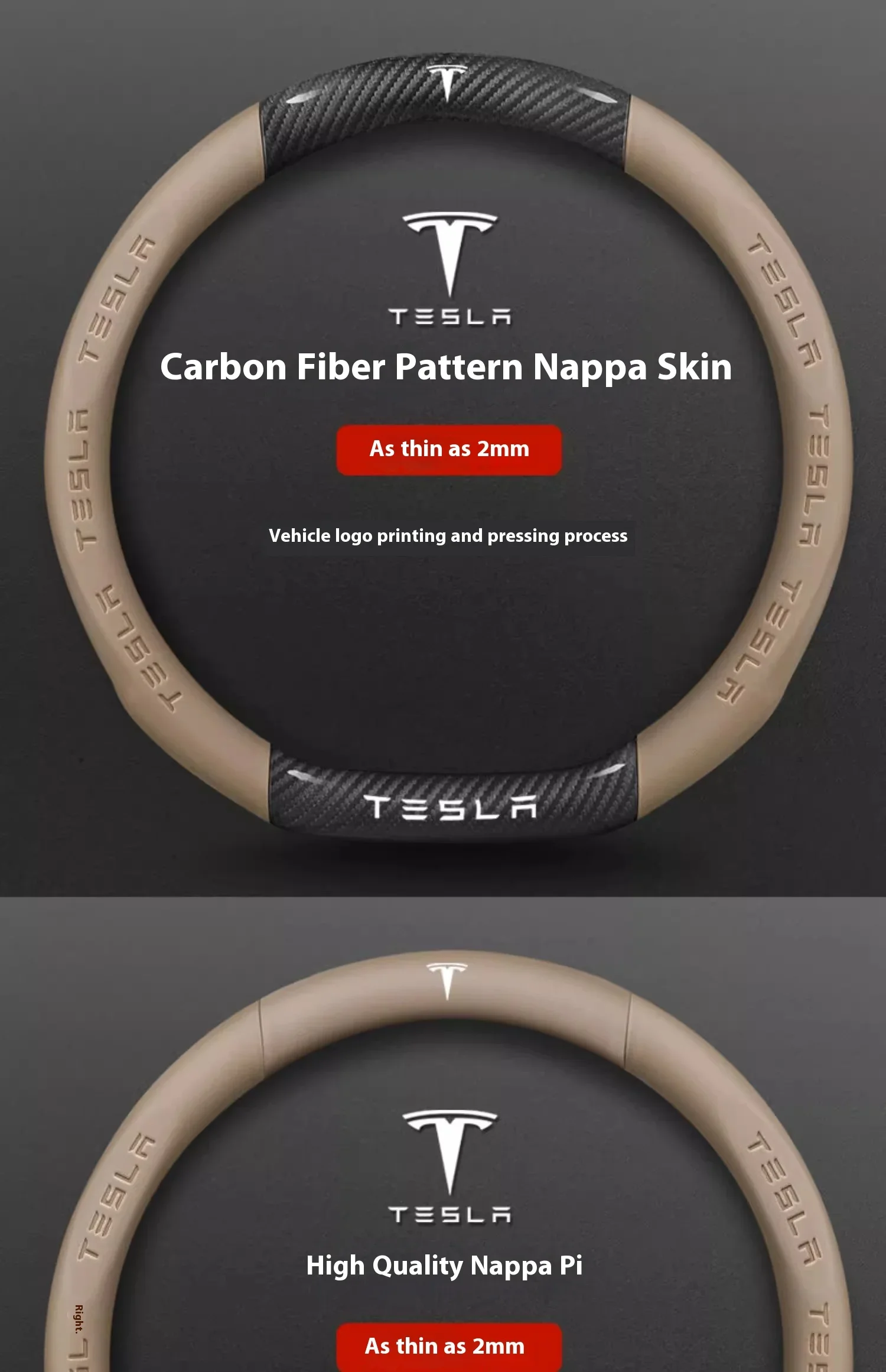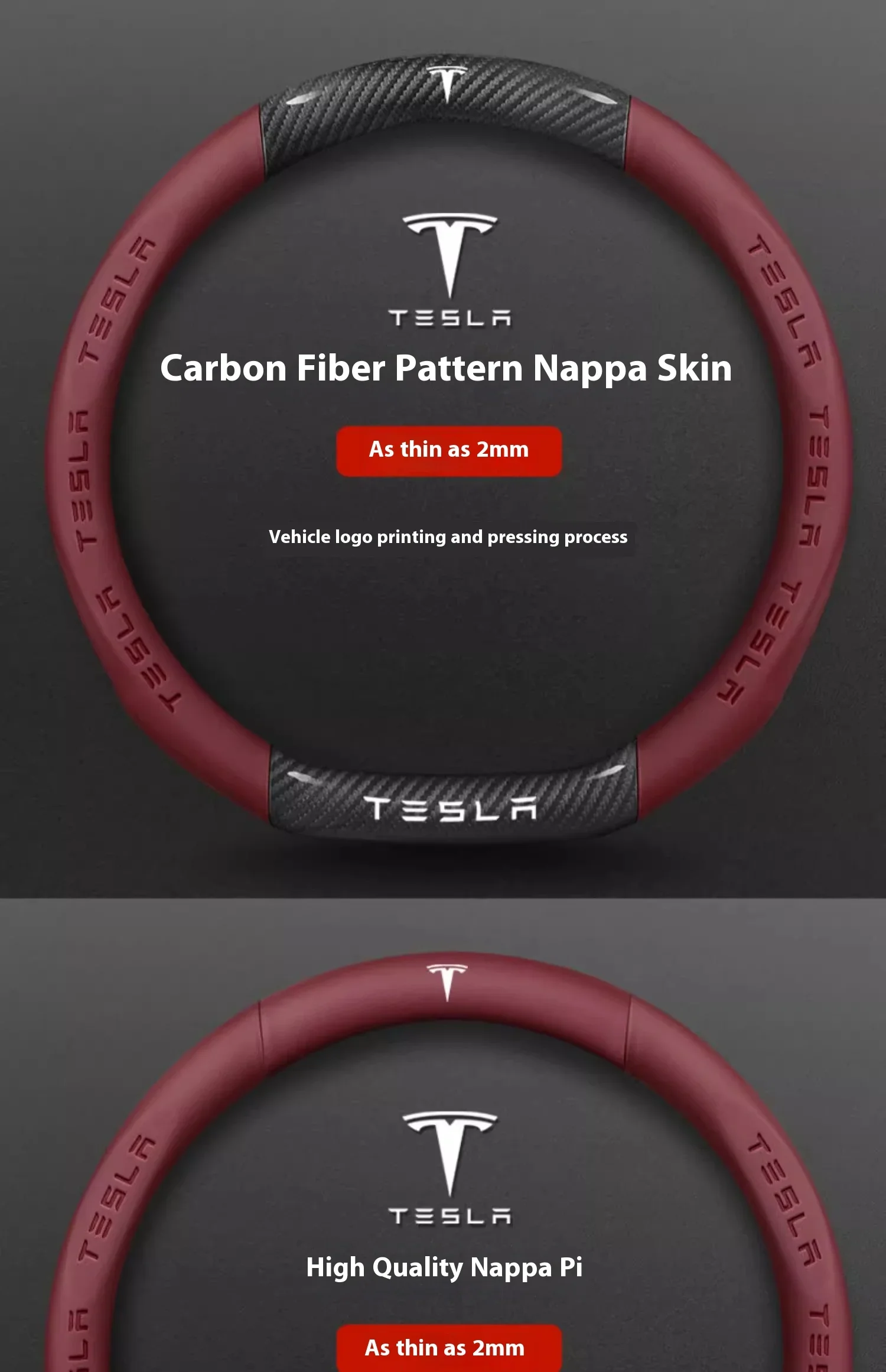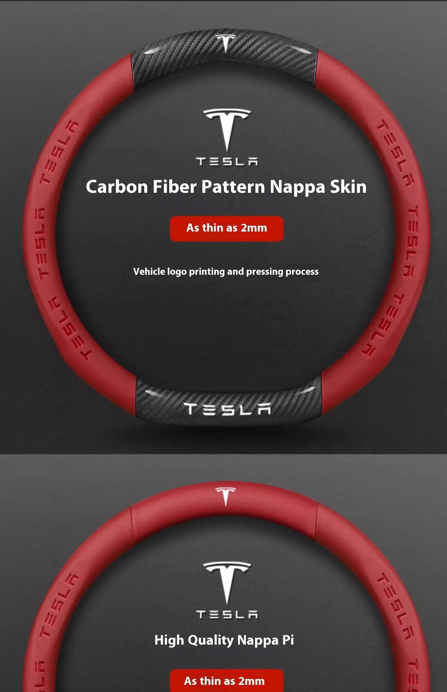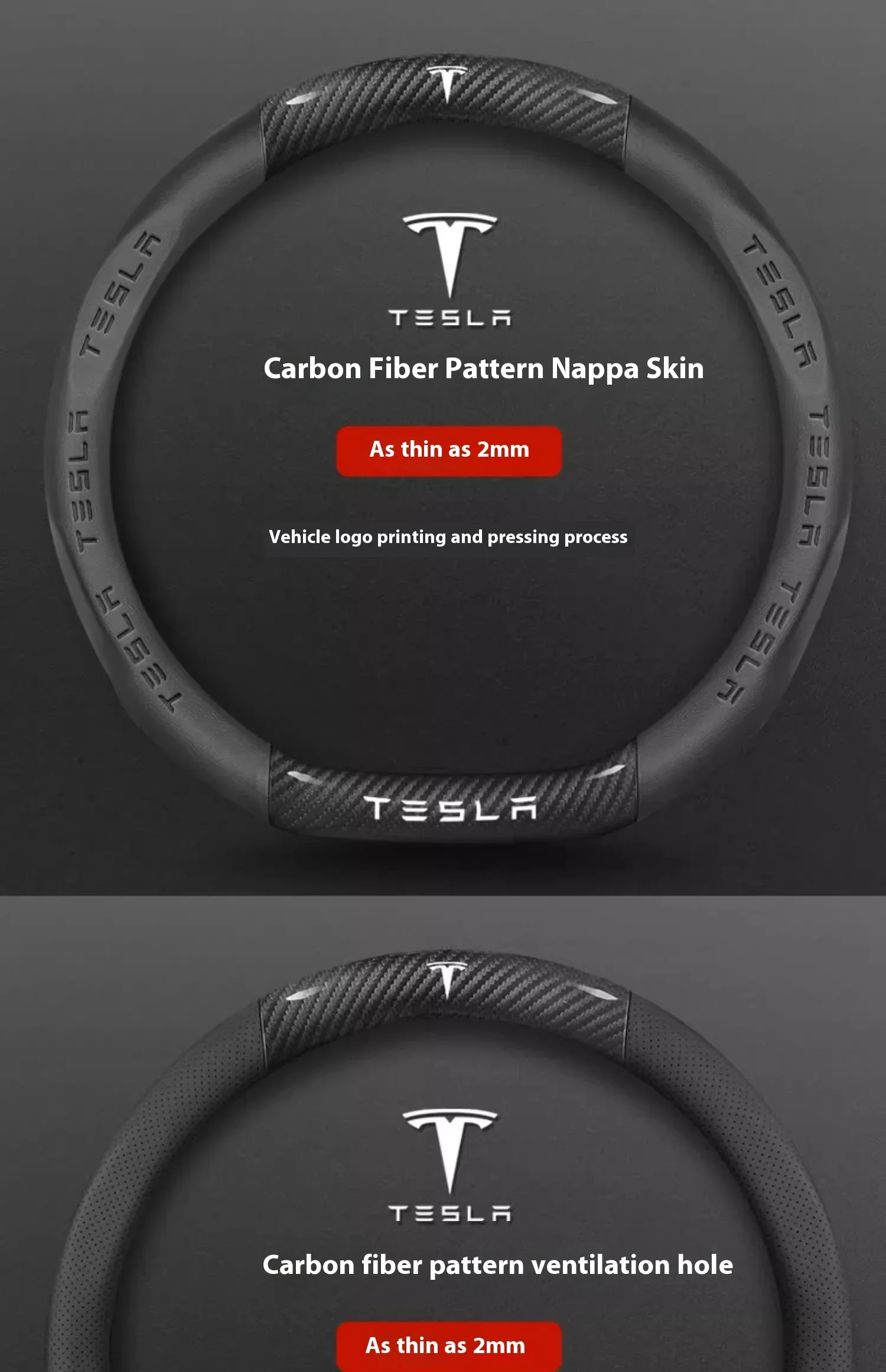 Tesla Carbon Fiber Leather Steering Wheel Cover