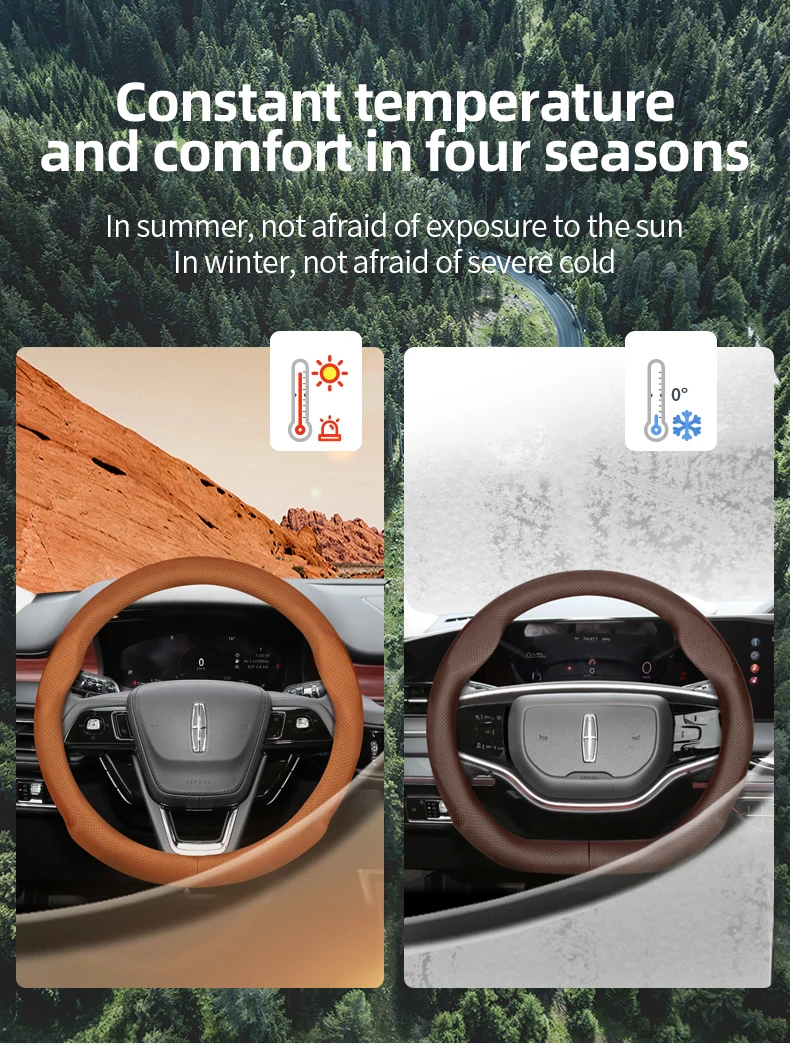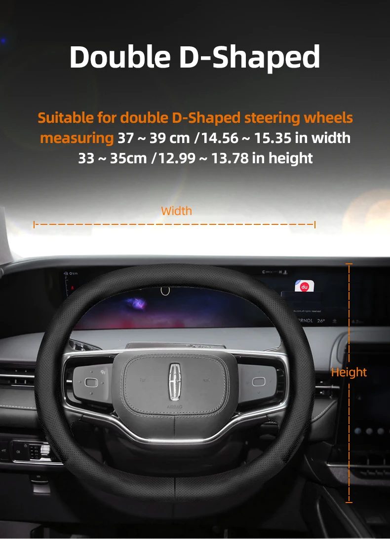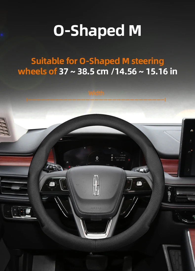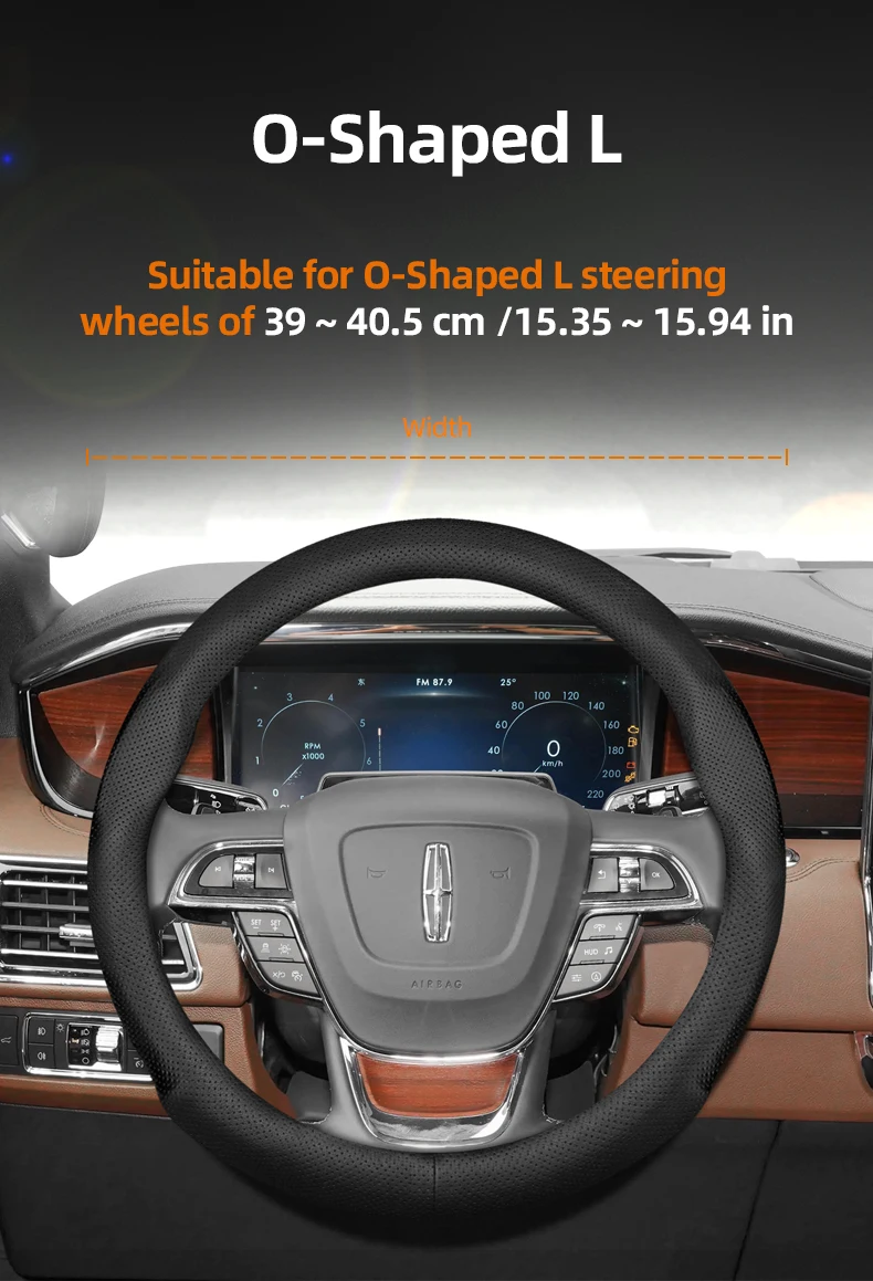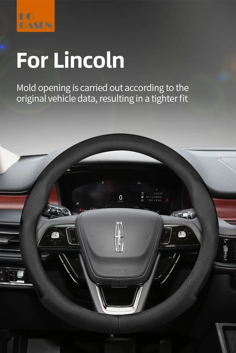 Premium breathable leather steering wheel cover designed specifically for Lincoln vehicles. Enhances grip, comfort, and interior aesthetics while protecting your original steering wheel from wear and tear.