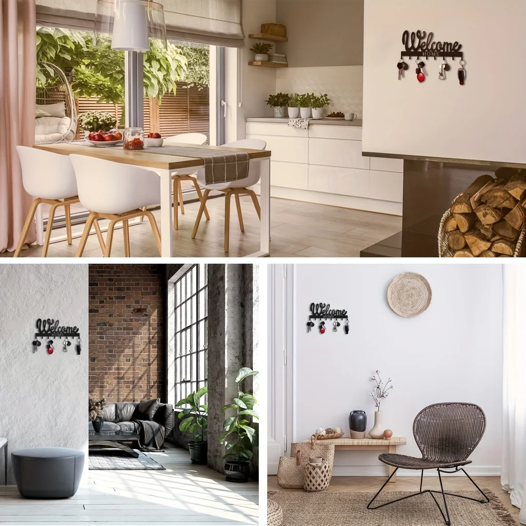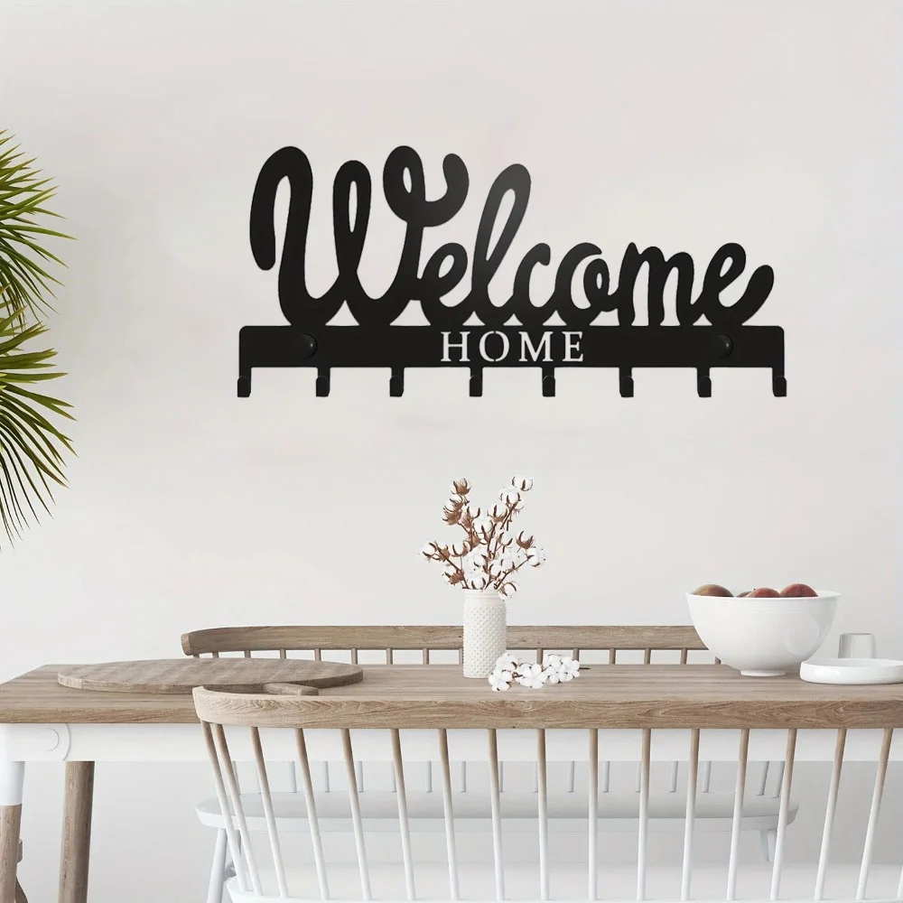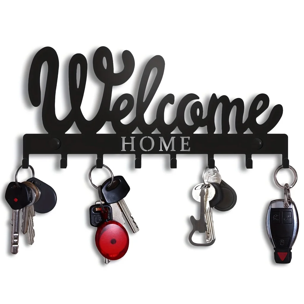 Black Metal Wall Key Holder – WELCOME Design with 8 Hooks
