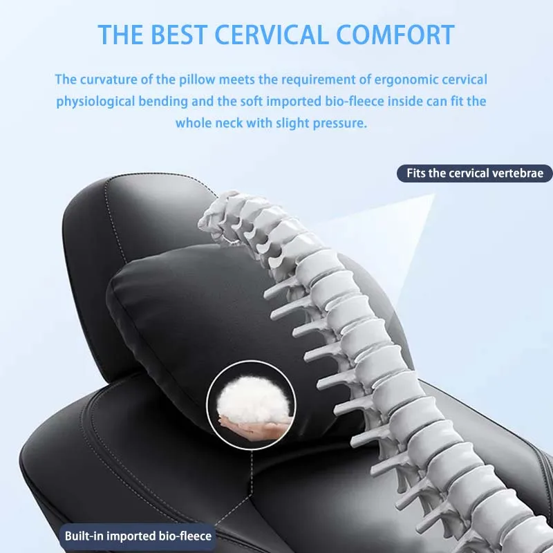 - Ergonomic Headrest & Waist Pillow support for spine protection
