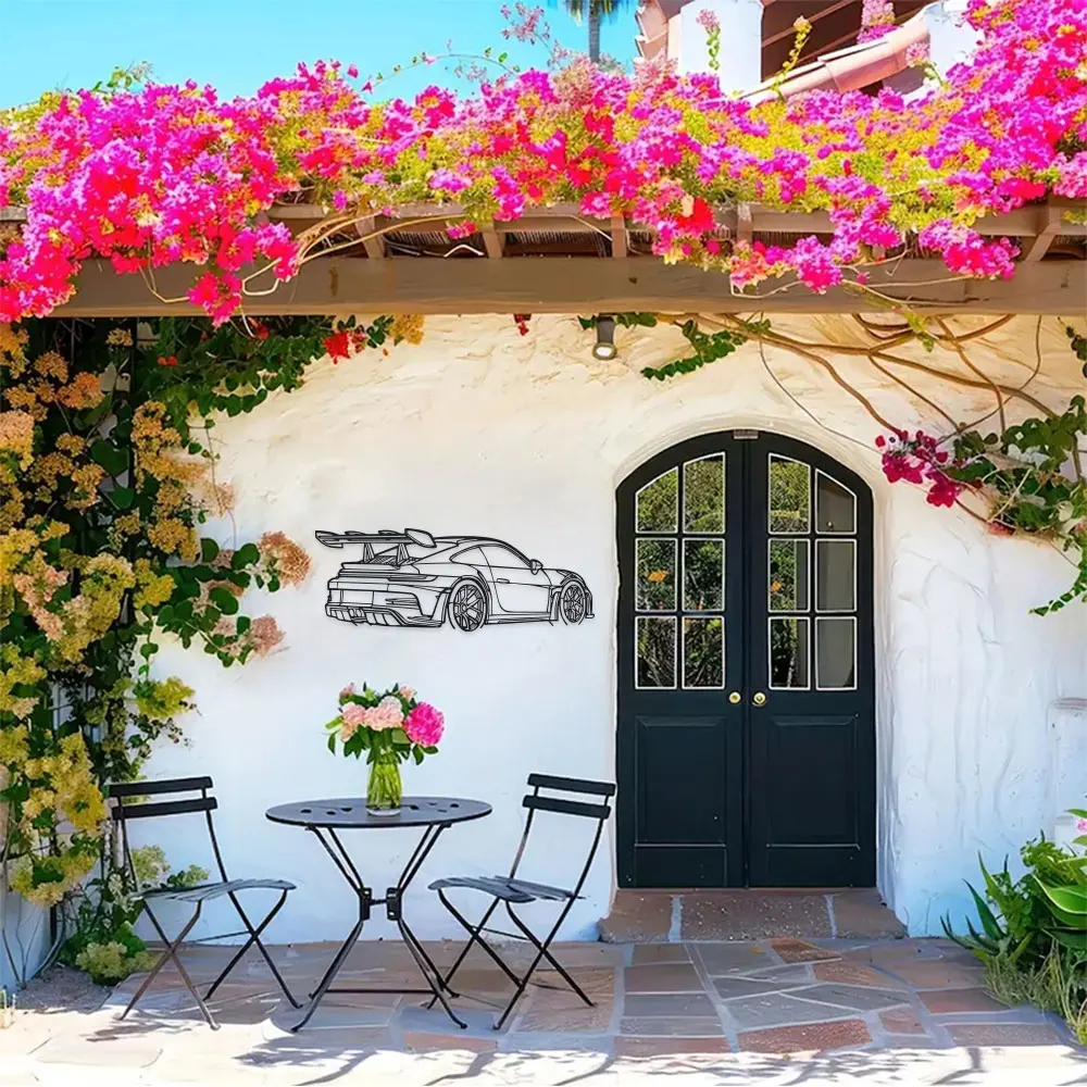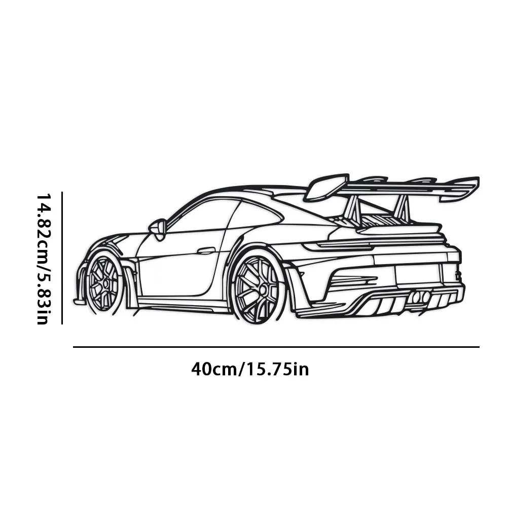 Add a touch of modern elegance to your space with this Minimalist Sports Car Metal Wall Art. Crafted from premium black metal, it features a sleek sports car silhouette with a detailed spoiler and exhaust pipes — perfect for car lovers and design enthusiasts alike.