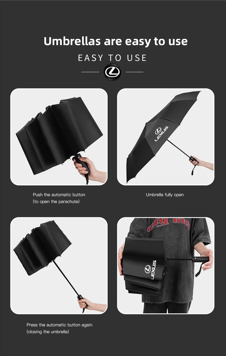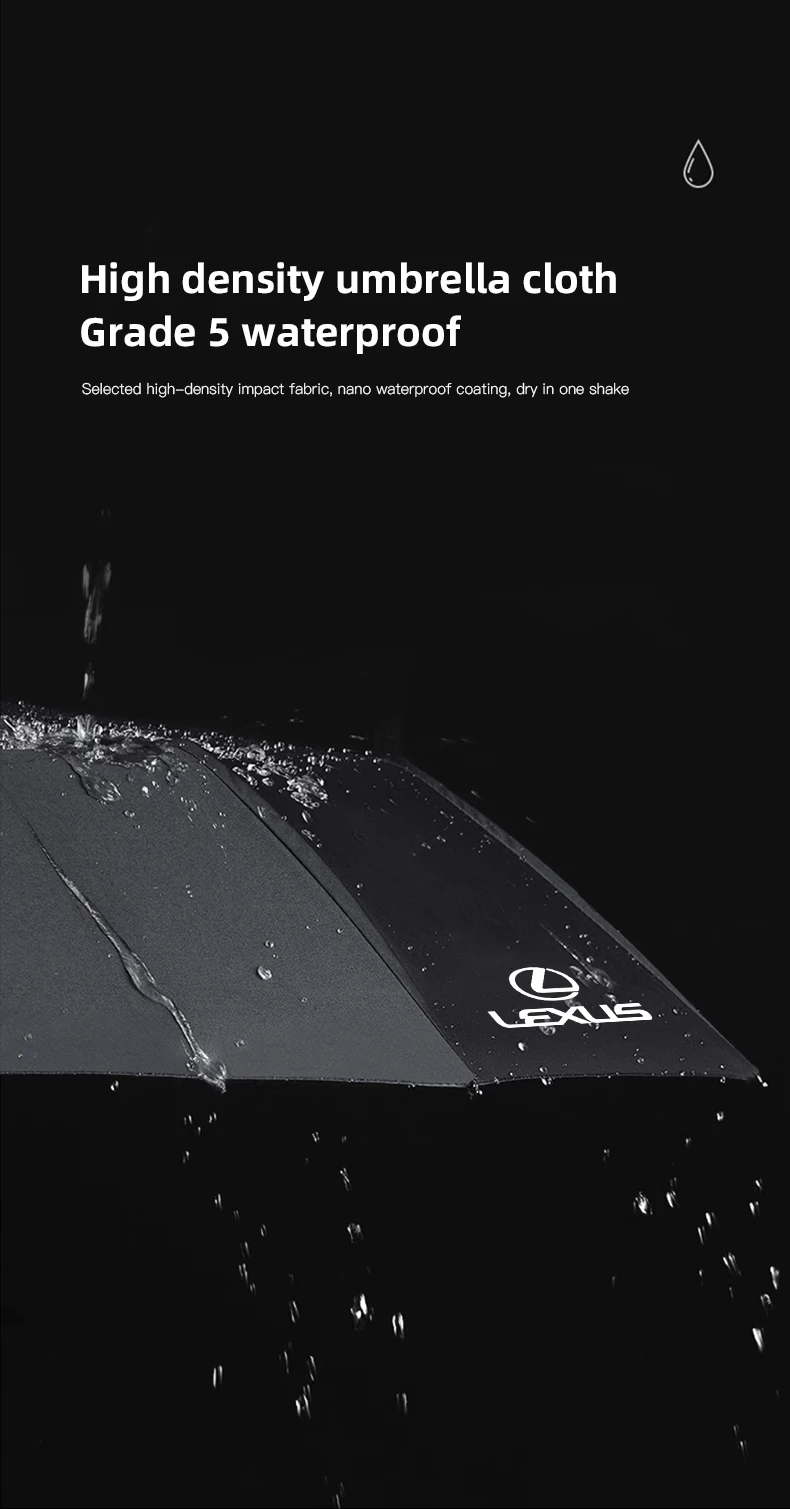 Stay protected from rain or shine with the Lexus Branded Fully Automatic Umbrella, designed for Lexus enthusiasts who value style and practicality. This premium umbrella features a one-touch automatic open and close system, making it convenient for quick use. Built with a windproof reinforced frame and water-repellent canopy, it delivers durability and reliable coverage in any weather. Compact enough to fit in your glove box, yet stylish enough to match Lexus’s bold design language, it’s the perfect accessory for daily commutes and road trips.
