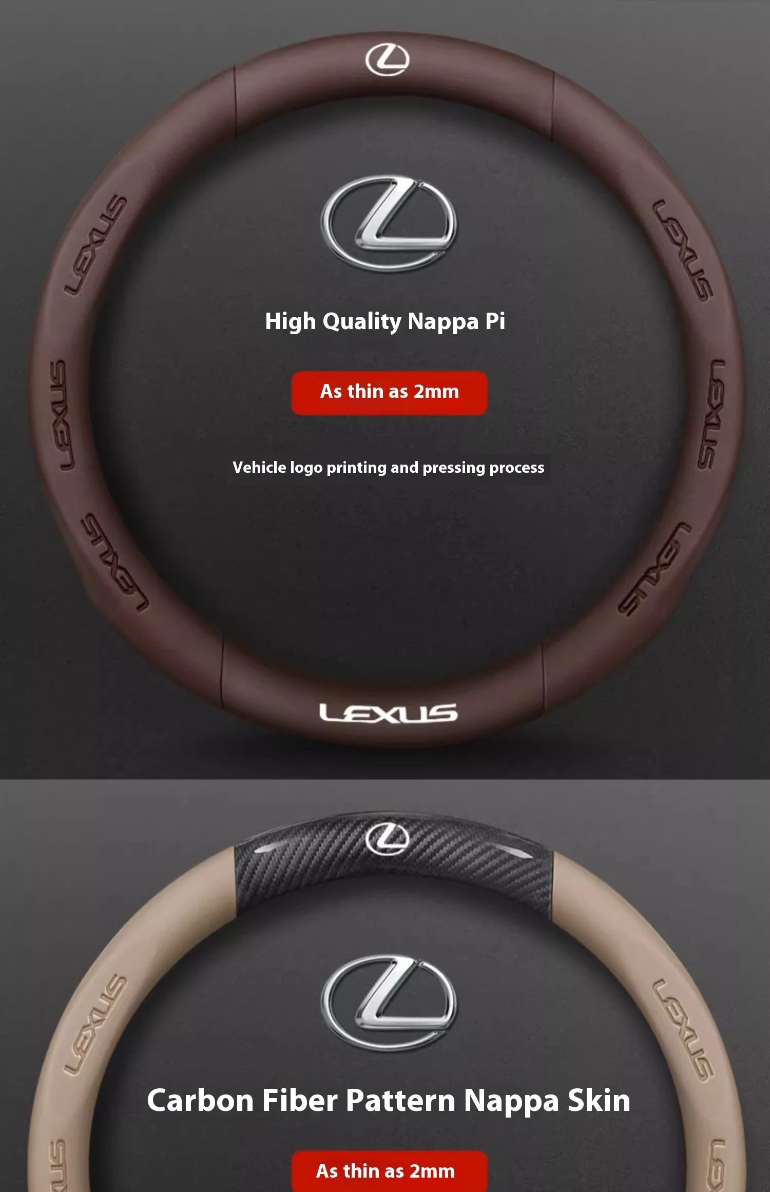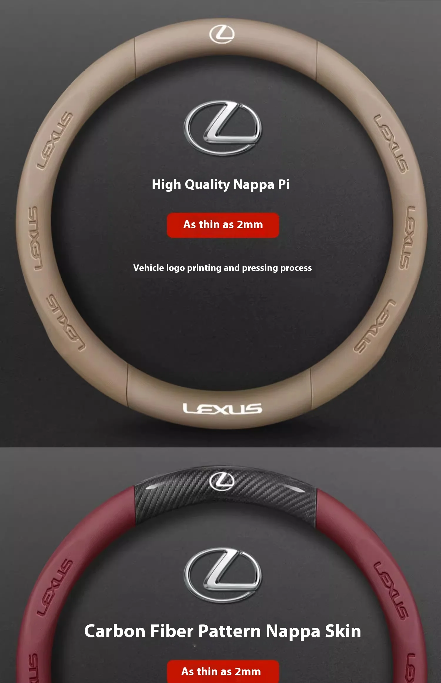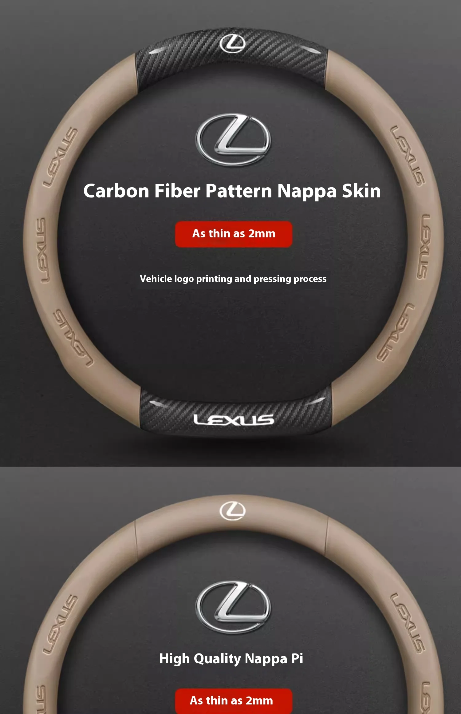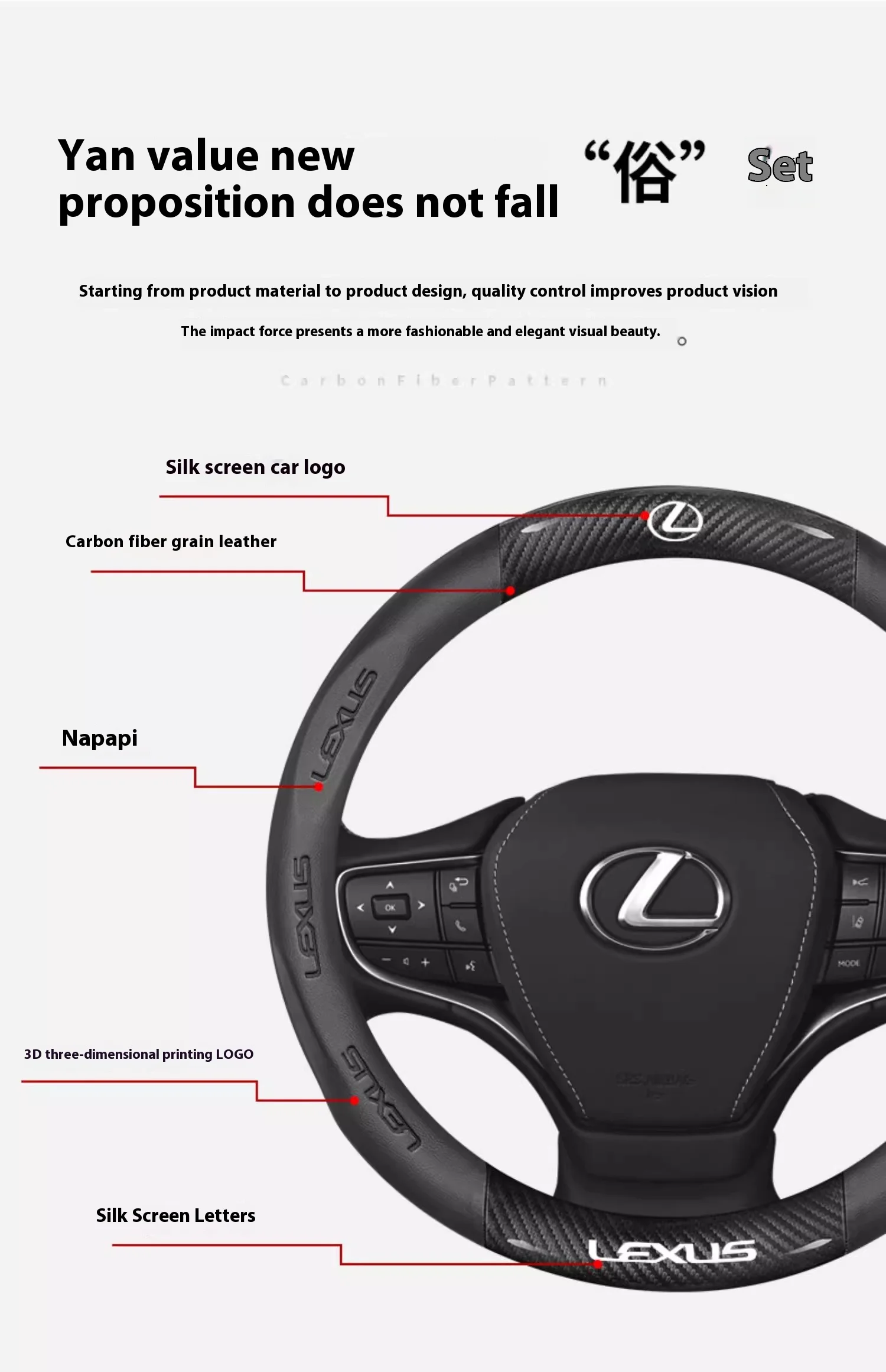 Elevate your Lexus interior with this premium suede leather carbon fiber steering wheel cover. Compatible with ES200, ES260, ES300, RX300, LS500h, GS300, IS250, IS300, CT200h, LX570, GX, NX & UX models.