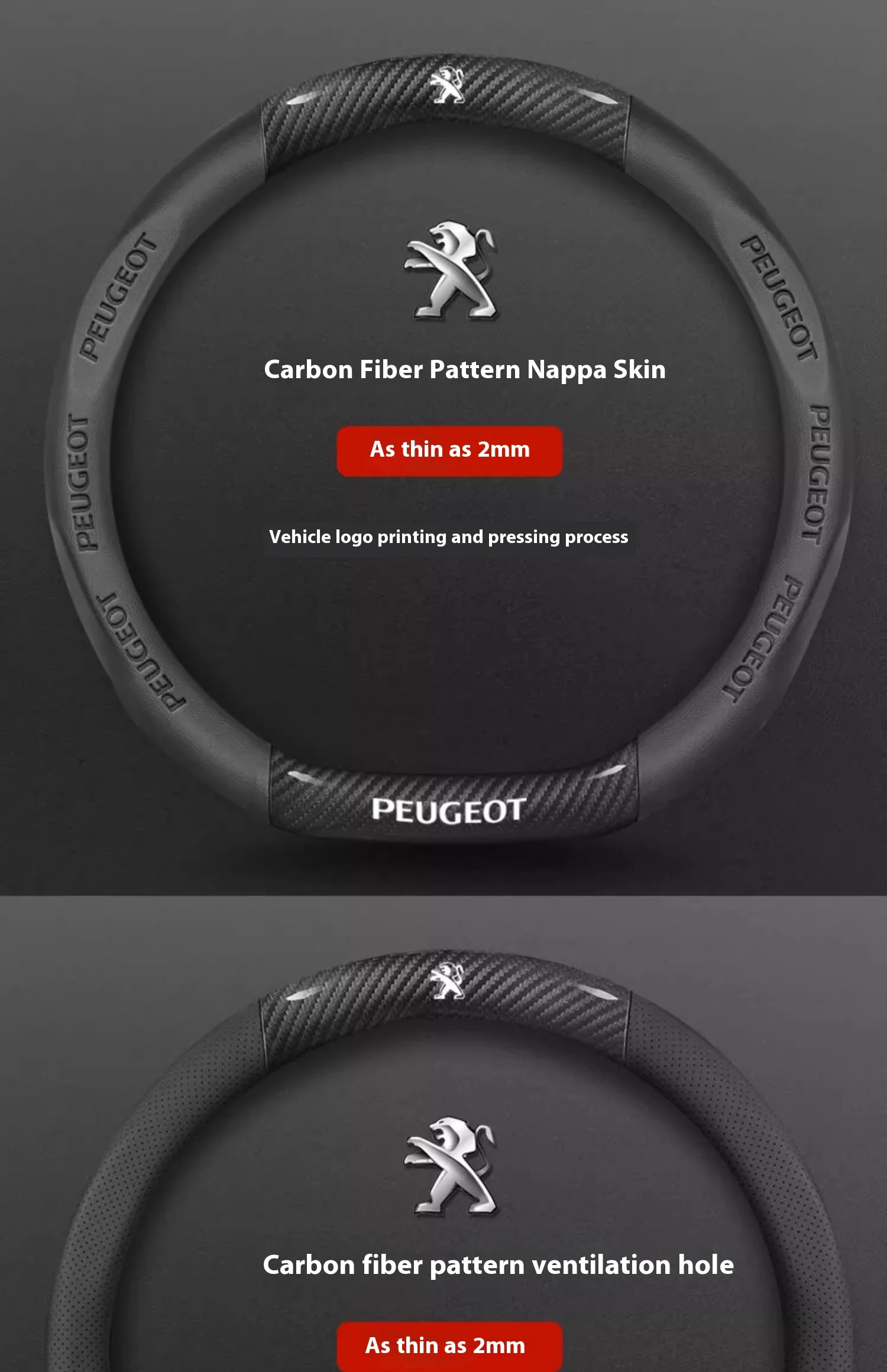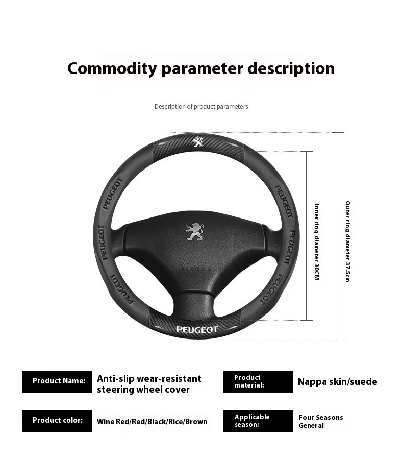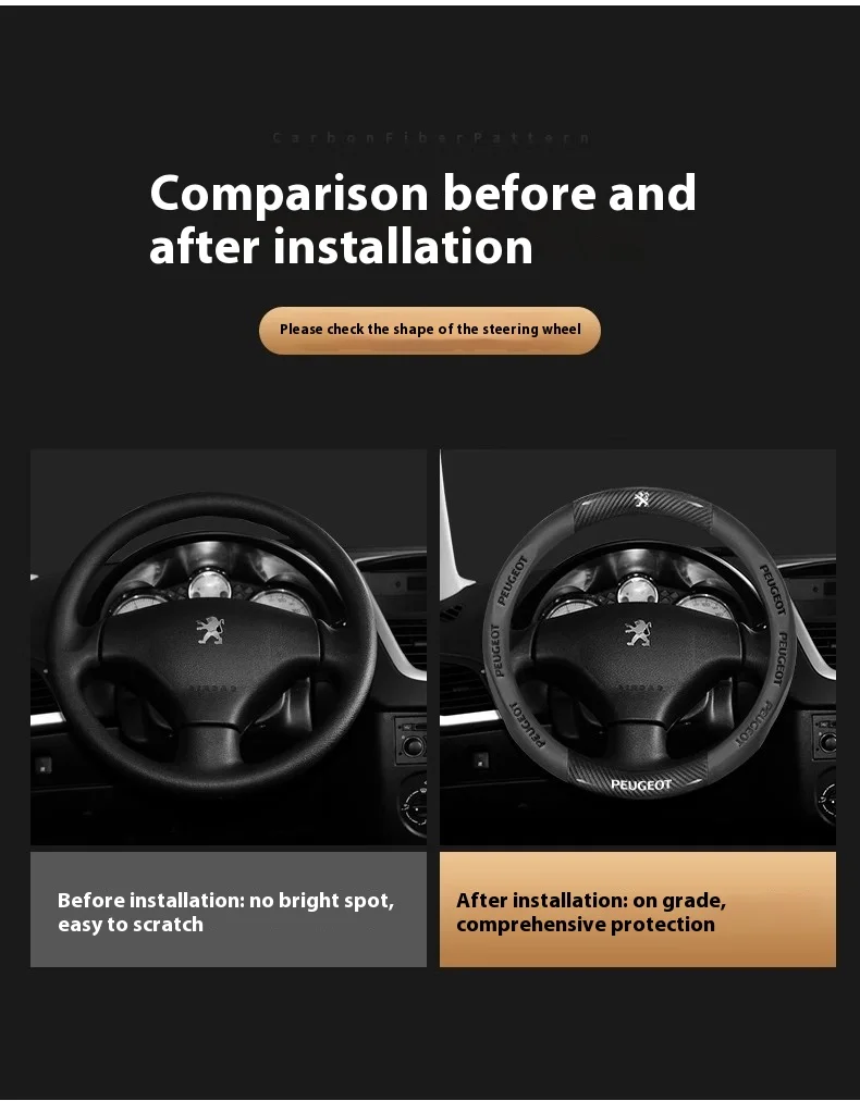 Peugeot Carbon Fiber Leather Steering Wheel Cover