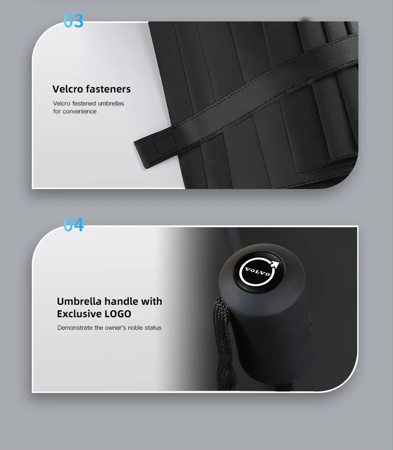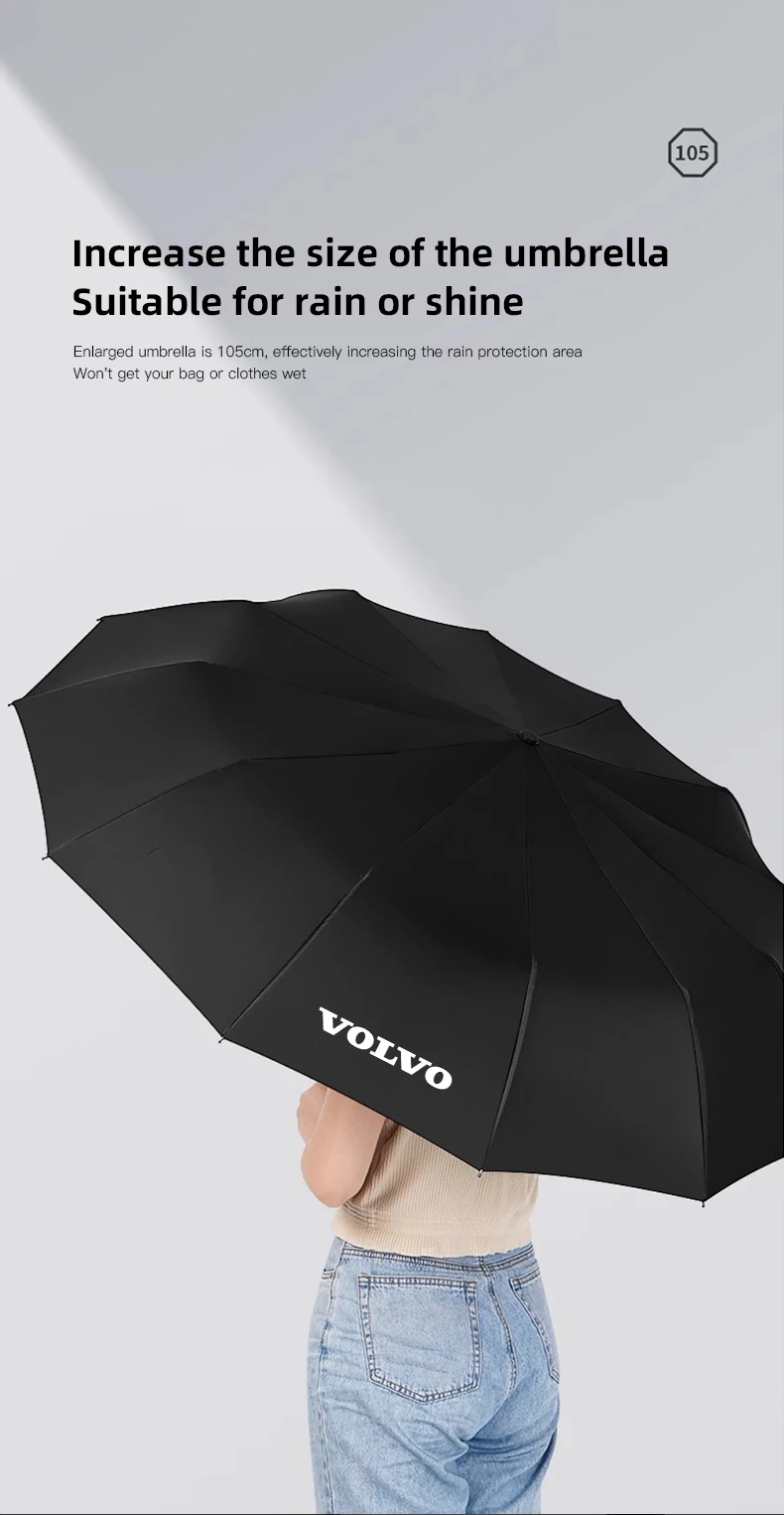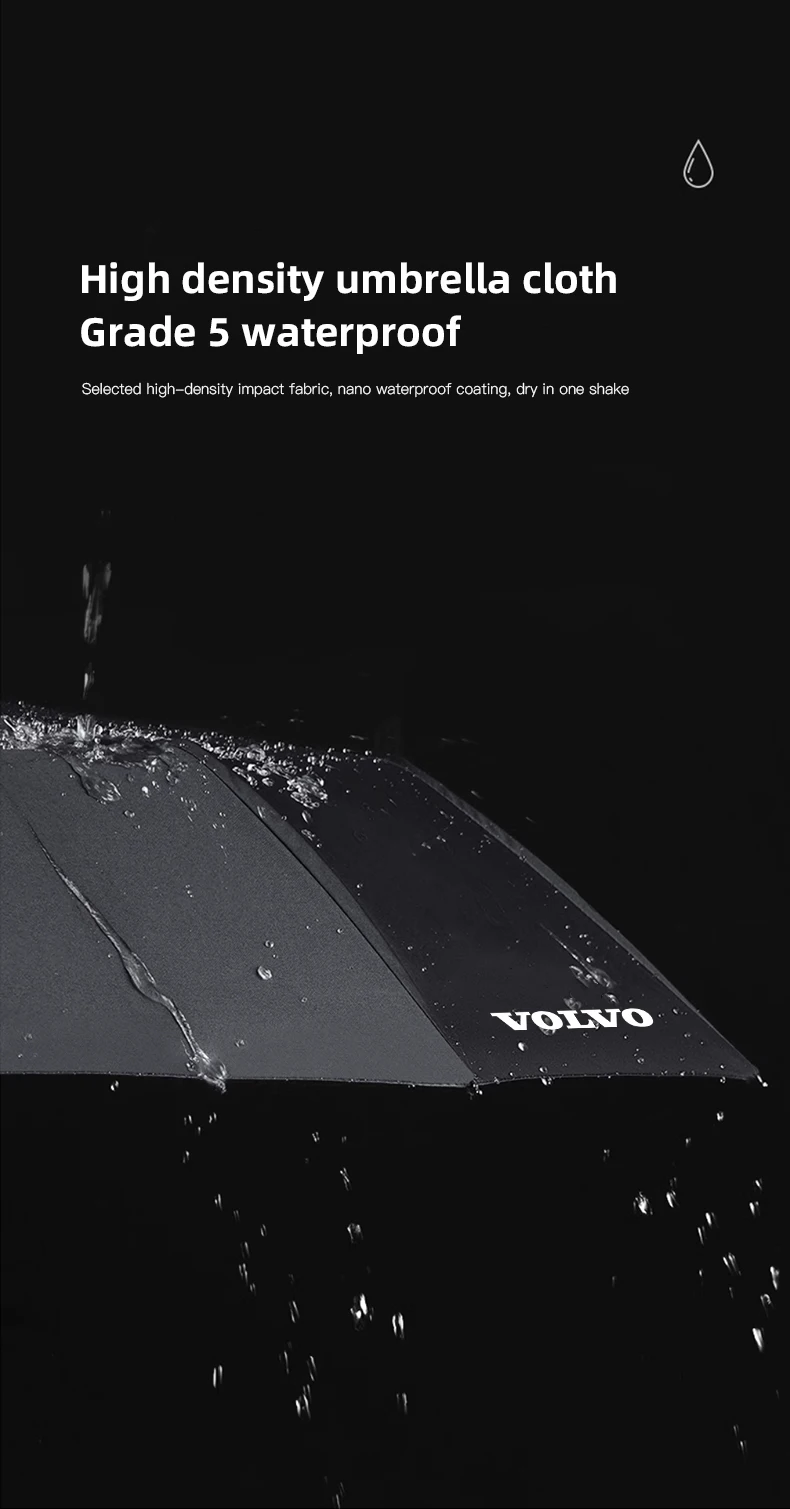 Stay protected from rain or shine with the Volvo Branded Fully Automatic Umbrella, designed for Volvo enthusiasts who value style and practicality. This premium umbrella features a one-touch automatic open and close system, making it convenient for quick use. Built with a windproof reinforced frame and water-repellent canopy, it delivers durability and reliable coverage in any weather. Compact enough to fit in your glove box, yet stylish enough to match Volvo’s modern design, it’s the perfect accessory for daily commutes and road trips.