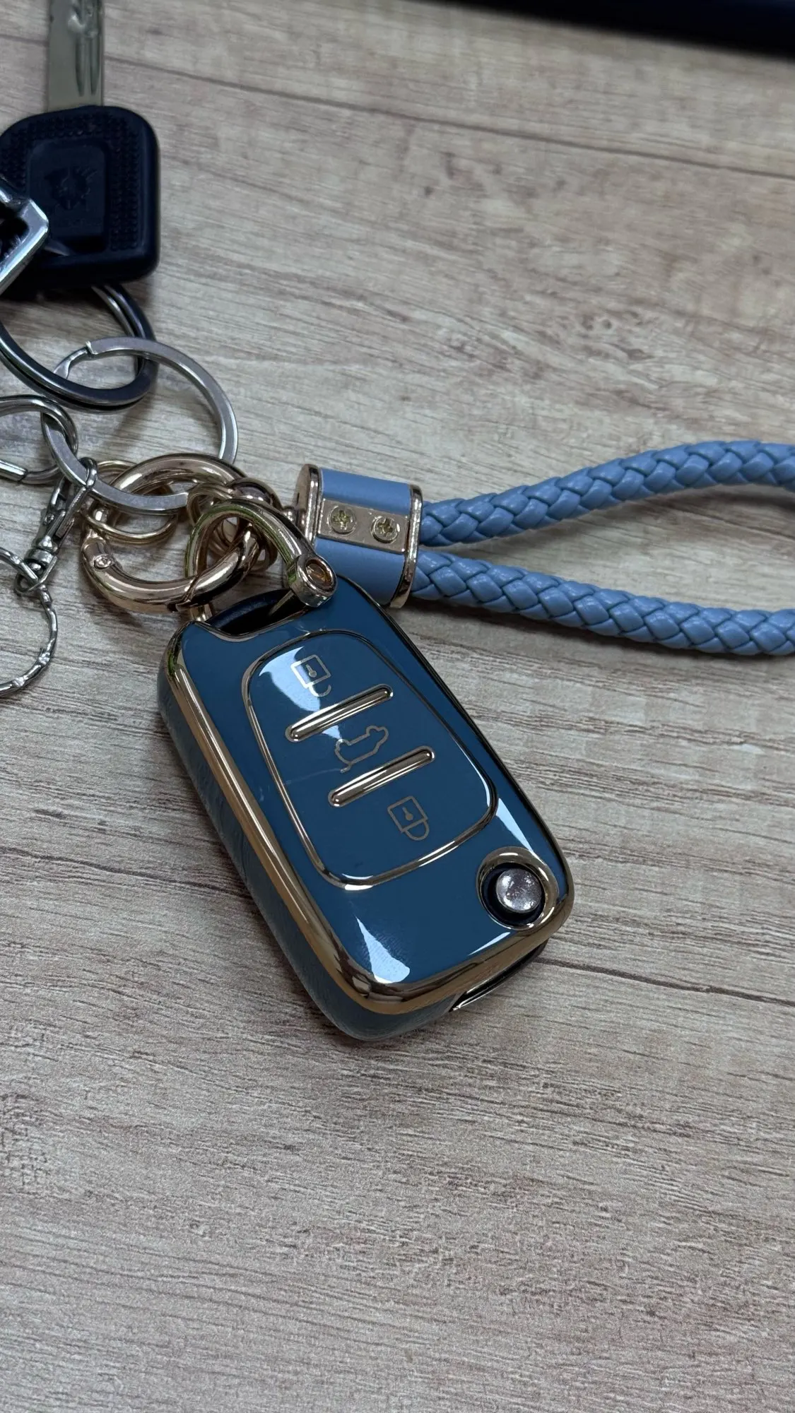 Keep your keys stylishly secure with this braided leather keychain. Durable design with a sleek metal ring for car keys, house keys, or fobs.